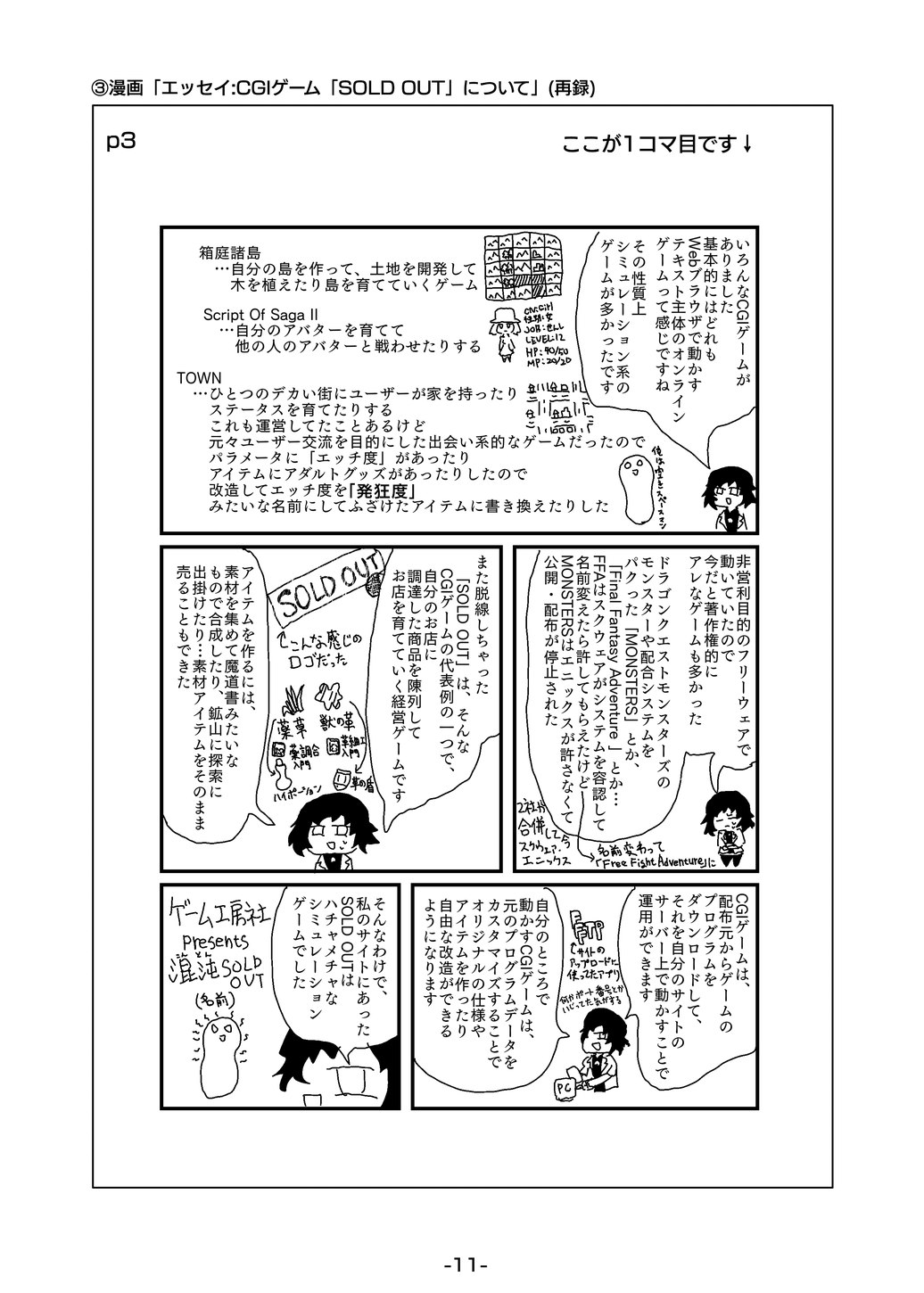 3 漫画「エッセイ:CGIゲーム「SOLD OUT」について」(再録)